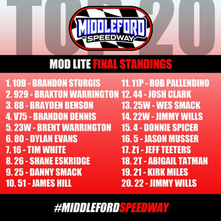 2022 FINAL STANDINGSmiddlefordspeedwayJan 19, 20231 min readšØ The 2022 final standings have been submitted! Congratulations to ALL racers! We canāt wait to see some more awesome racing at #MiddlefordSpeedway this summer! š