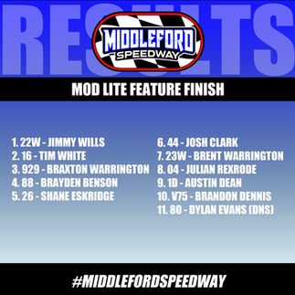 Guy Mitchell Memorial ResultsmiddlefordspeedwayJul 24, 20231 min readHere are the results from this past weekend’s Guy Mitchell Memorial at #MiddlefordSpeedway. Congratulations to all of our first place finishers! 🏁