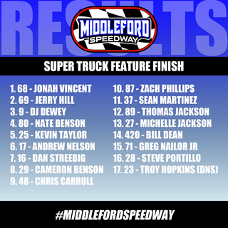 NOAH VINCENT MEMORIAL RESULTS 8/6/22middlefordspeedwayAug 8, 20221 min readšØThe results are in! Check out this past weekendās finishes at #MiddlefordSpeedway! Congratulations to all of our feature winners! šš