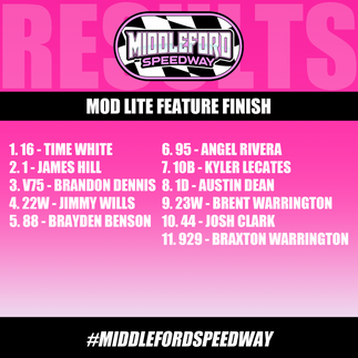 PINK Event Results 10-15-23middlefordspeedwayOct 16, 20231 min readHere are the results from this weekend’s PINK race benefitting the American Cancer Society. Congratulations to all of our first place finishers! 🏁💞