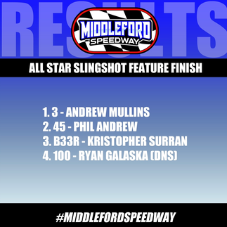 RESULTS 6/17/23middlefordspeedwayJun 19, 20231 min readšØHere are the results from this weekendās races at #MiddlefordSpeedway! Congratulations to all of our first place finishers! š